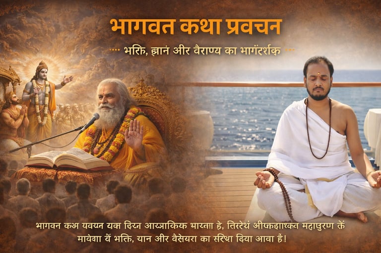 भागवत कथा प्रवचन भक्ति, ज्ञान और आत्मिक शांति का दिव्य स्रोत है, जो जीवन को धर्म और सत्य के मार्ग से जोड़ता है।