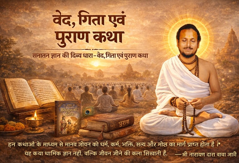 “सनातन ज्ञान की दिव्य धारा – वेद, गीता एवं पुराण कथा”